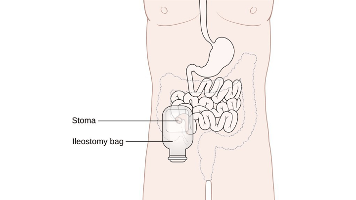 An ostomy made on the surface of your abdomen to bring out a part of the small intestine is known as an ileostomy. The opening made from the small intestine is called the stoma, and it expels feces out of the body without letting them pass through the diseased colon. Reasons you may need an ileostomy may include Crohn’s disease, colorectal cancer, and ulcerative colitis.